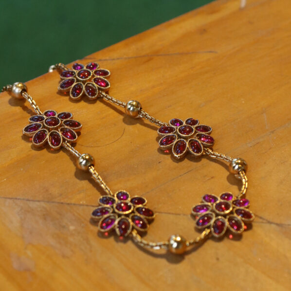 Intricately designed motifs, exquisite stone settings, and a radiant finish come together to create a masterpiece worthy of grand celebrations. The choker’s bold yet graceful structure highlights the neckline beautifully, while its refined craftsmanship adds depth, charm, and opulence to the overall look.