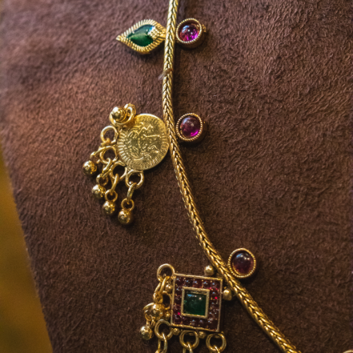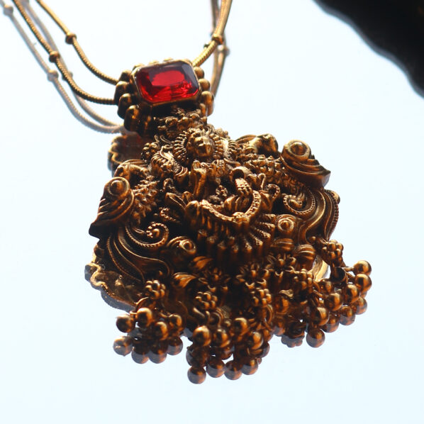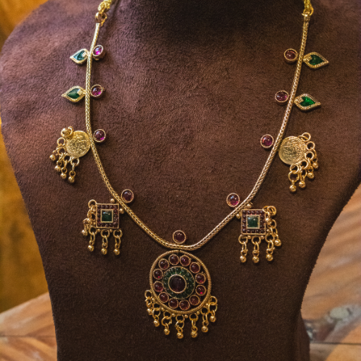 Intricately designed motifs, exquisite stone settings, and a radiant finish come together to create a masterpiece worthy of grand celebrations. The choker’s bold yet graceful structure highlights the neckline beautifully, while its refined craftsmanship adds depth, charm, and opulence to the overall look.